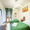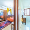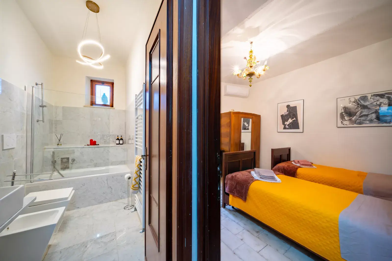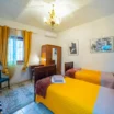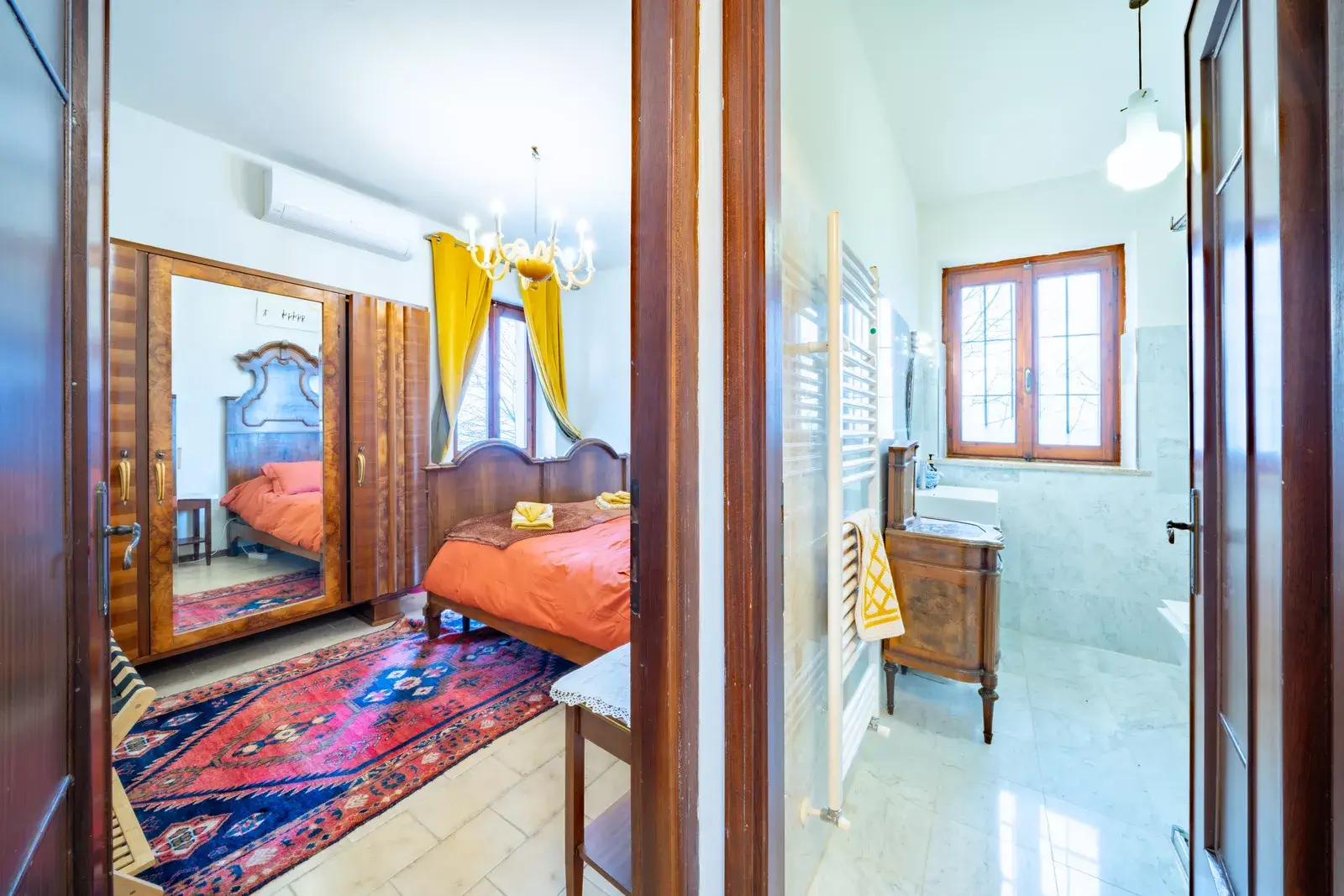 Selve husets indretning bærer stadig præg af, at det er en klassisk villa. Der er fem soveværelser i alt: et med queensize-seng, tre med to enkeltsenge og så en selvstændig lejlighed indrettet med mindre køkken samt sidste soveværelse med to sovesofaer. Der er i alt tre badeværelser; to med bruseniche samt ét med badekar.