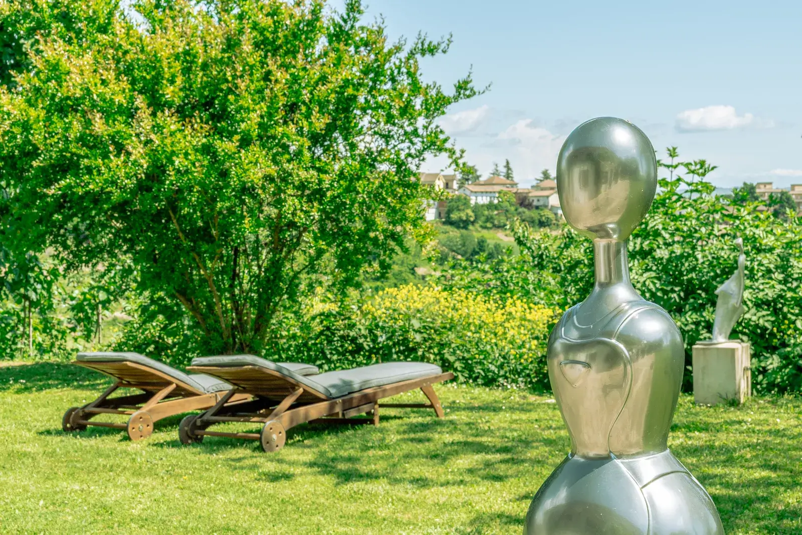 Alene det at hænge i og rundt om poolen, kan få det fleste til at mene, at alt er opnået - mere behøver en ferie ikke. Men alligevel er der mere at hente, for som noget ret enestående, er haven fuld af kunstværker af både italienske og internationale kunstnere, der om noget gør haven unik. At sidde i de bekvemme havemøbler og dels studere de opsatte kunstværker og dels lade blikket vandre hen over de berømte vinstokke fra Piemonte og videre ind over den nærliggende landsby, Castelnuovo Calcea, sætter sin helt egen stemning og standard.